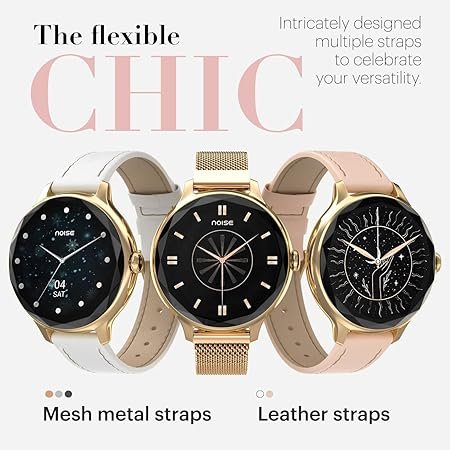- Health & fitness features – Stay stylish and prioritise your health with 24X7 heart rate monitoring, SpO2 tracking, sleep tracking, female cycle tracking, and more, ensuring you stay on top of your well-being.;Additional features – Unlock the full potential of your smartwatch with over 100+ watch faces and a wide range of productivity tools. Seamlessly integrate weather updates, calculator, notifications, and reminders into your daily routine, maximising your productivity and convenience; In-the-box – The contents of the box include the NoiseFit Diva smartwatch, a magnetic charging cable, and the user manual, ensuring you have everything you need to get started and make the most of your new timepiece.