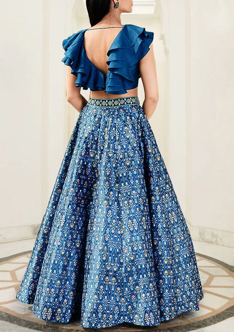 Blue Lehenga Set With Hand Embroidered Blouse – DLS00679